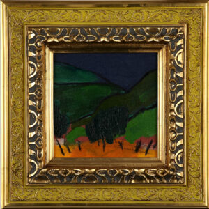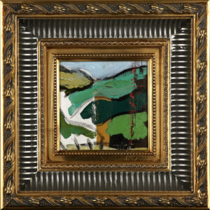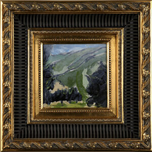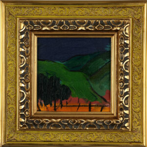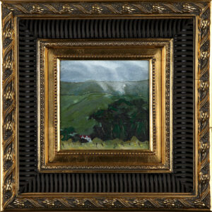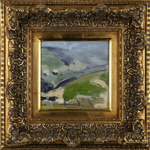 The next four landscape oil paintings were not initially included in the 2013 exhibition as there was a limit to wall space in the gallery and they have a different style of marks than many of the other works, with lines scratched into the wet paint with the end of a brush.