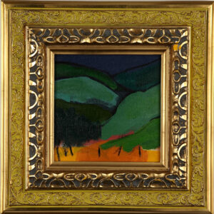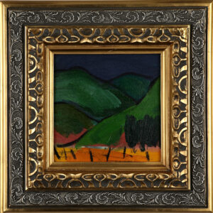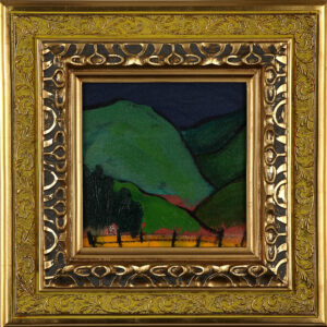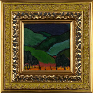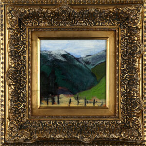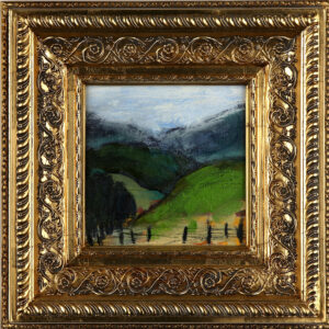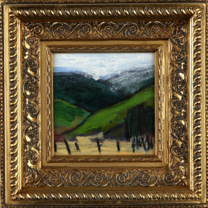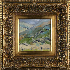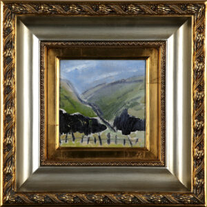 These landscapes have a loose expressionist line and a complex colour pallet inspired by the mist and mystery of the New Zealand hills.