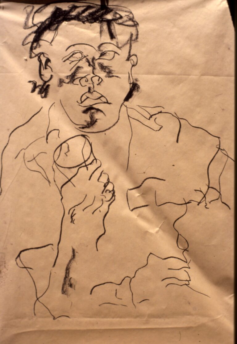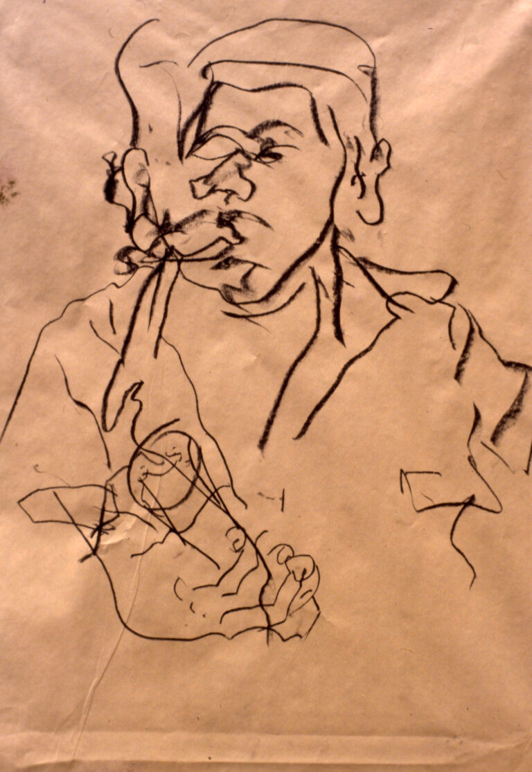 Beer and Cigarettes. A triptych of charcoal drawings on brown paper. Mount Martha, Victoria 1987.
