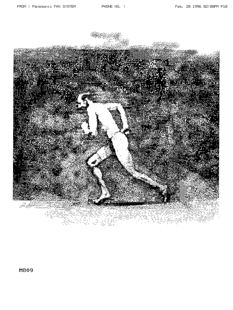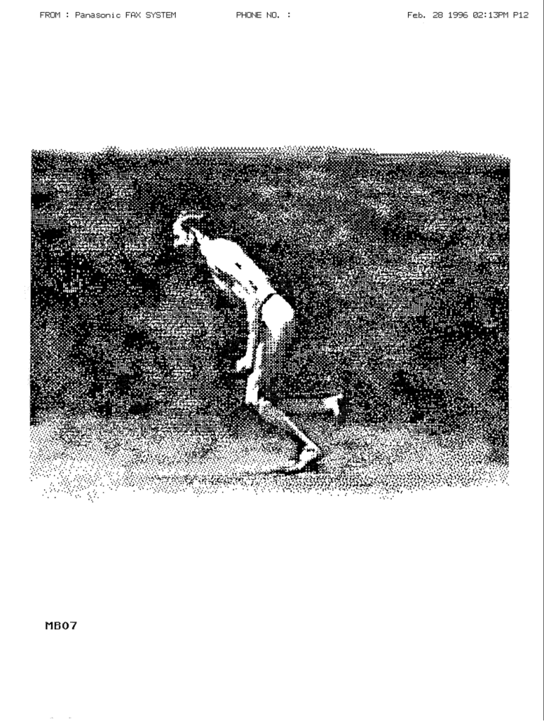 The image captions below were hand-written on the cards but no photos of that exist. The running-man originals are from E Muybridge and were scanned on a Mac SE, manipulated in MacPaint, printed, faxed to a computer, printed again to scale, then mounted and the handwriting added – quite a process.