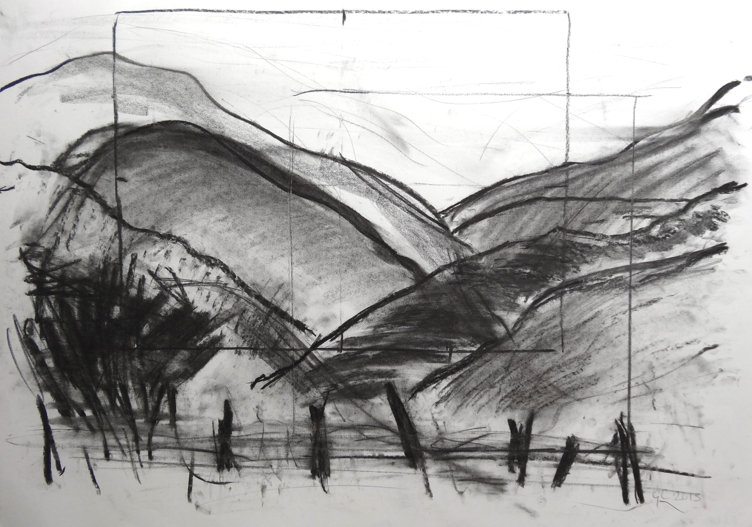 I recently found these preliminary drawings I did for the 2014 Landscape oil painting exhibition. They were quick sketches to work out the shape of the landscape and then some bord